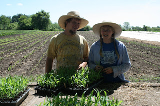 The last of our corn has been planted. We decided to transplant all of our corn this year to ensure better germination. Jolianne and Jonathan are pictured with the last of the transplants. We also have the mulching finished in the main garden and now we are waiting for plants to grow! Late May and early June is always a very busy time on the farm. Now we can concentrate on making hay for the horses. We have our fingers crossed that we get the hay we cut the end of last week in the barn before the next rain fall.